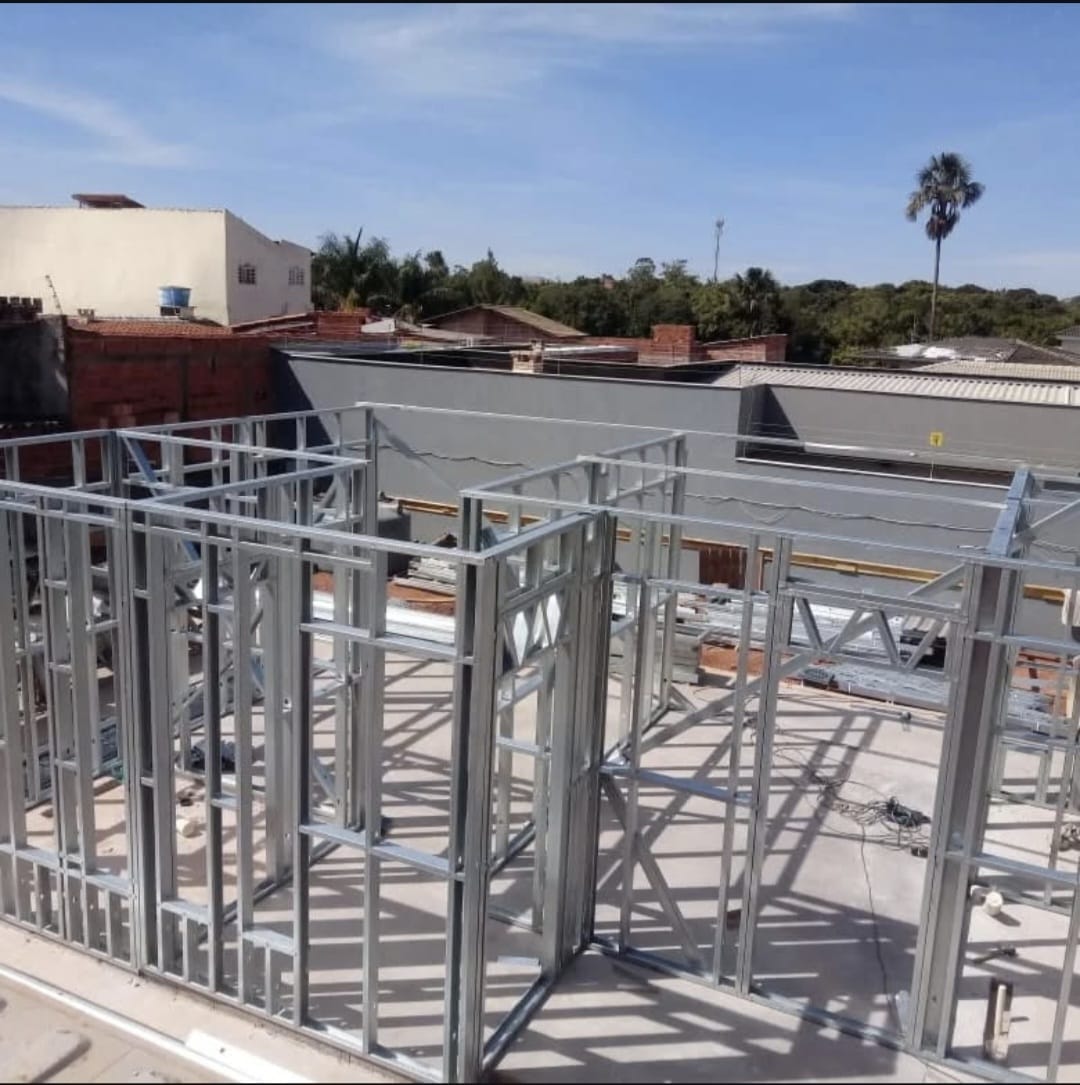 Sistema construtivo moderno que utiliza perfis de aço galvanizado, garantindo precisão estrutural, rapidez na execução e alto padrão de acabamento.