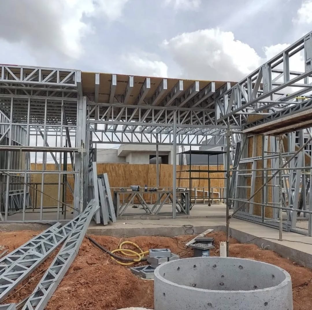 Sistema construtivo moderno que utiliza perfis de aço galvanizado, garantindo precisão estrutural, rapidez na execução e alto padrão de acabamento.
